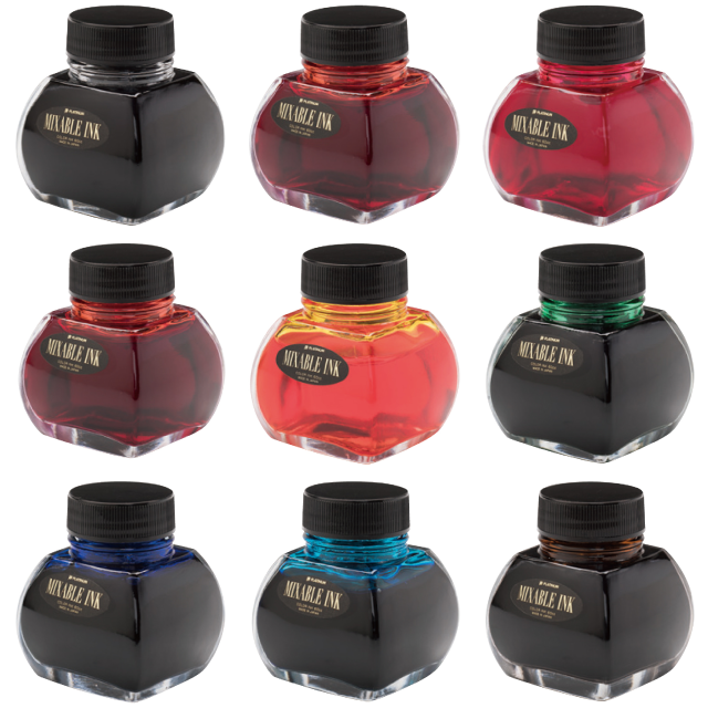 「ミクサブルインク」は2色のインクを混ぜ合わせる事を基本とし、別売りの専用薄め液でさらに自分の欲しい色に近づける事ができますので、万年筆ユーザーや書く事に興味のある方のインク色への欲求に応えられる製品になりました。自分のイメージカラーを作ってみたり、季節ごとに挨拶状、お礼状等を書く際に、その時の気持ちを色で表現したりと「無限に作れるカラーインク」でお楽しみ頂けます。