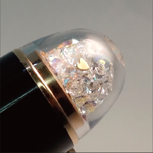 A special limited edition, “Shape of a Heart” will be released from the #3776 CENTURY series with “Slip & Seal Mechanism” that prevents ink from drying out.The limited model will be available in 2,000. Two heart-shaped pieces,which are punched out to make the breather hole on the pen nib, are placed together with crystals in the dome at the top of the pen.While the heart pieces are usually melted down and reused as a material,the new “Shape of a Heart” model incorporates them in the design.The pair of heart-shaped pieces enclosed in the dome gives a feeling of connection with your partner, making it an ideal gift for someone precious.The first commemorative model features two gold hearts-shaped pieces while the black body applied with pink-gold finished nib, clip and trim represents a design unique to the limited model. The crystals in the dome at the top add a special taste to the pen.