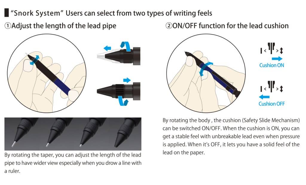 The PRO-USE 171 mechanical pencil, which has been favorably received for its built-in “Snork System” that allows users to choose the multiple writing feel, now comes in new limited-edition color “Matte Black and Copper” created by pursuing texture and design to every detail. Copper has a warmer color and exudes a sophisticated, elegant feel, which sets it apart from gold or silver. The special matte black color adds to the charms, creating a simple impression with a stunning presence that makes it ideal for anyone regardless of gender.
