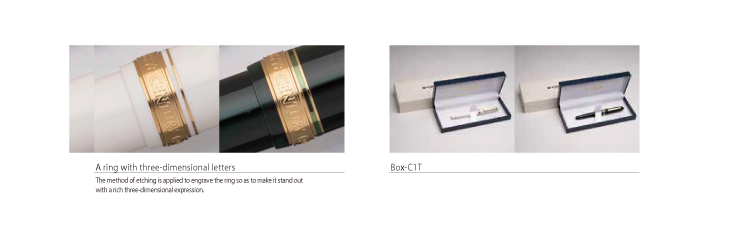 New colors, Chenonceau White and Laurel Green, will be added to the #3776 CENTURY series, which is enjoying a good reputation for its “Slip & Seal Mechanism” that prevents ink from drying out in the pen for up to two years as well as the 14K gold wide nib and the standard, well-balanced round form. In addition, the entire quality of the pens has been improved thanks to attention to detail including the cap ring to which the method of etching has been applied to provide a three-dimensional effect to the logo.