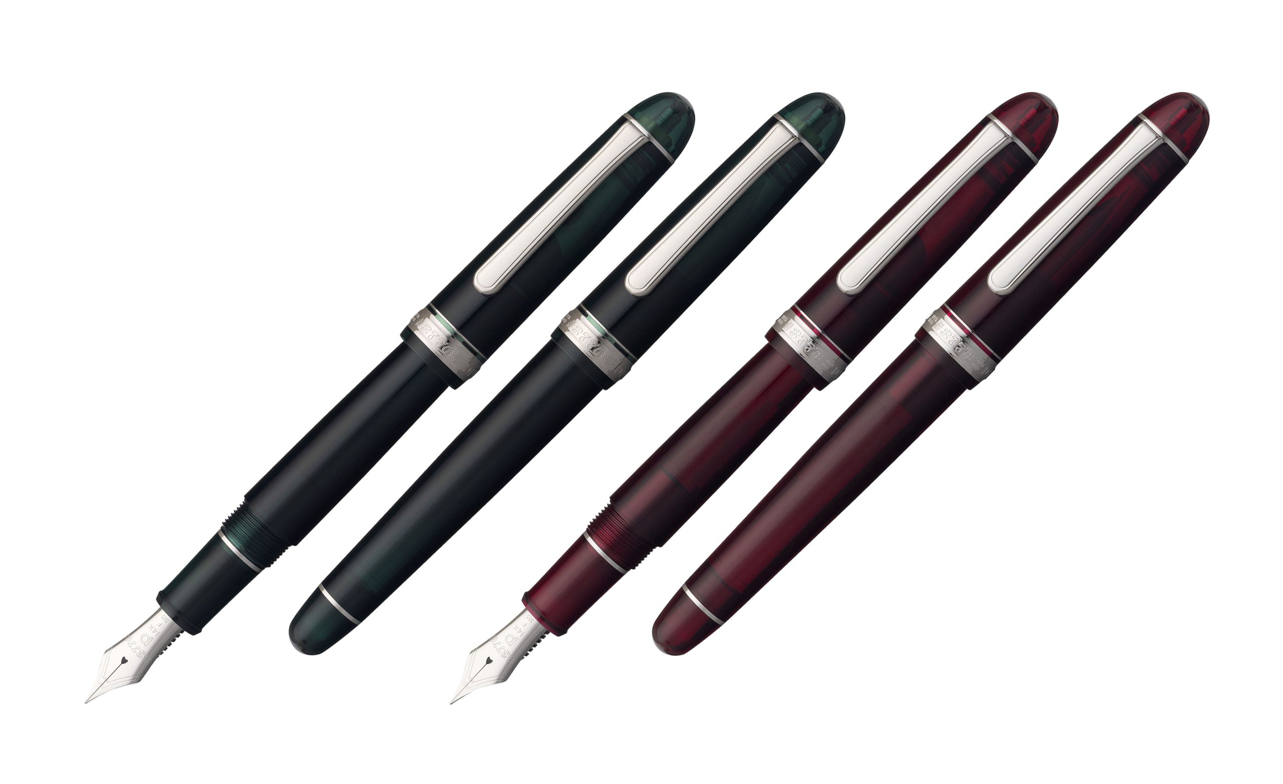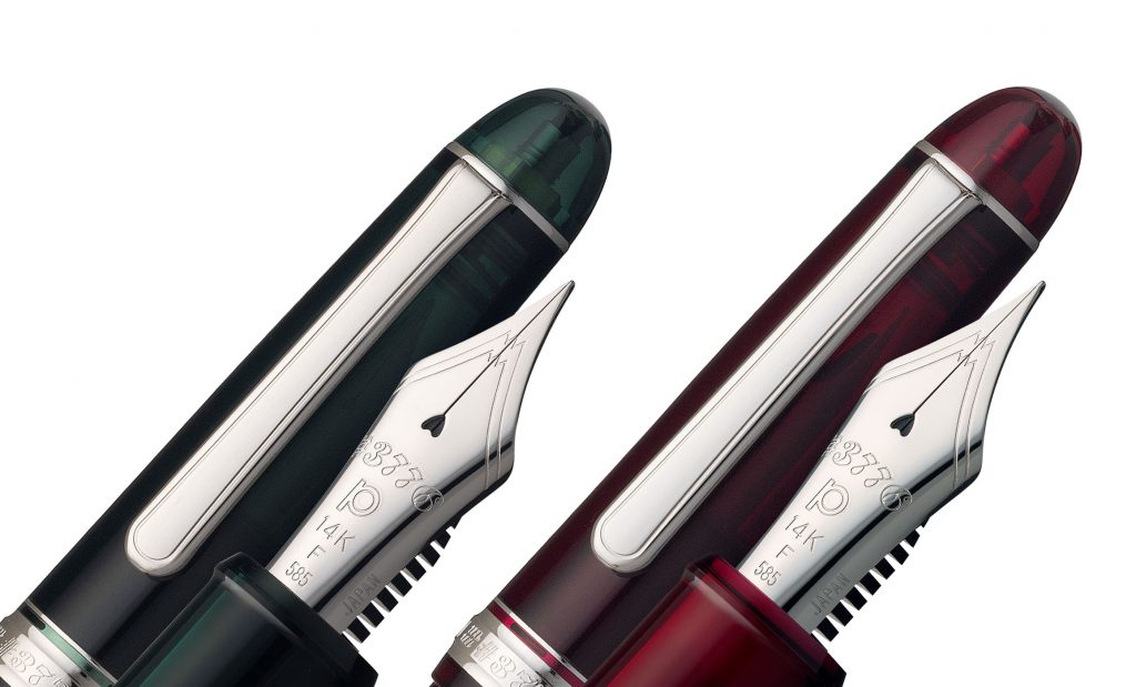 The #3776 CENTURY rhodium plated fountain pen with “Slip & Seal Mechanism” that prevents the ink from drying out even though not using the pen for two years, has a large 14K gold nib, and the well-balanced, sleek design. This time, new colors “Laurel Green” and “Bourgogne” are joining to the collection.