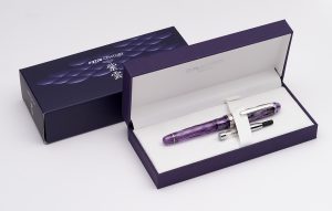 A part that resembles Mount Fuji is placed at the top of the pen, expressing the mountain enveloped in purple colors.