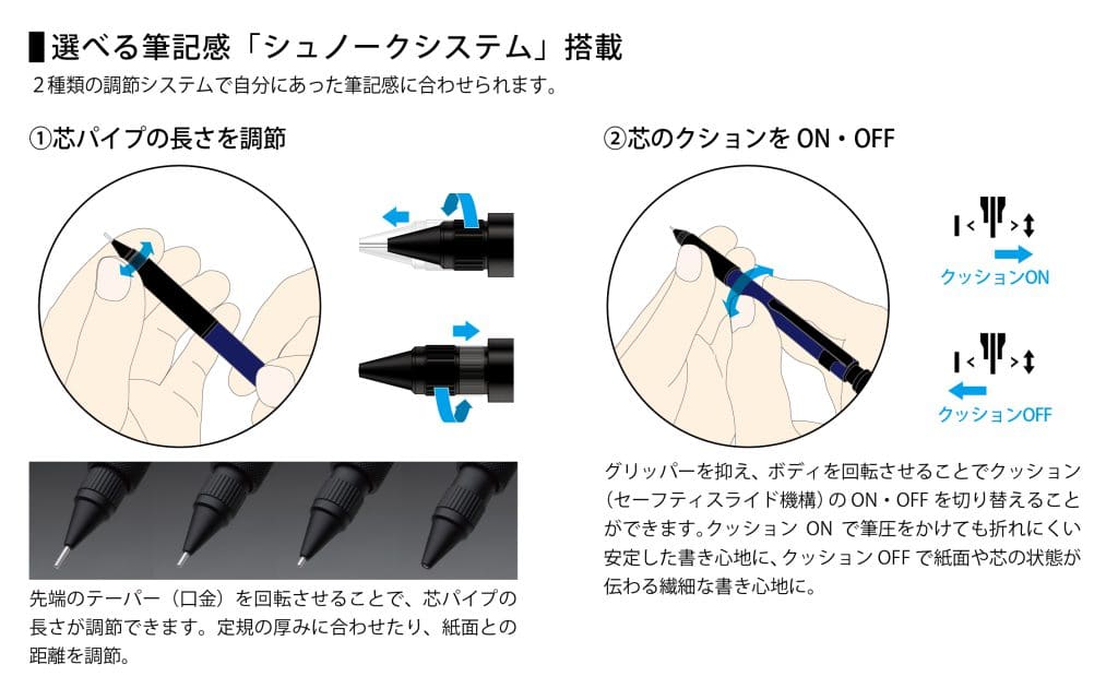 シュノークシステムの紹介 <2種類の調節システムで自分にあった筆記感に合わせられます。>