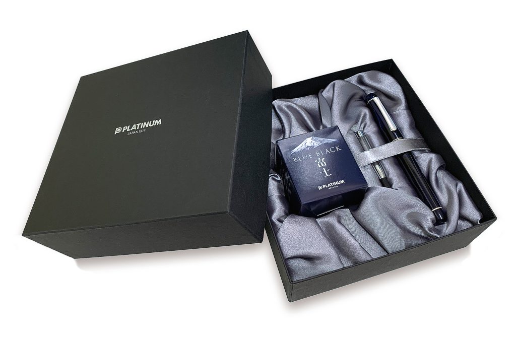 特製化粧箱・「ブルーブラック富士」瓶インク(60ml)・コンバーター700A(シルバー)※ブルーブラック富士は富士山麓の天然水を使用した万年筆用インクです。