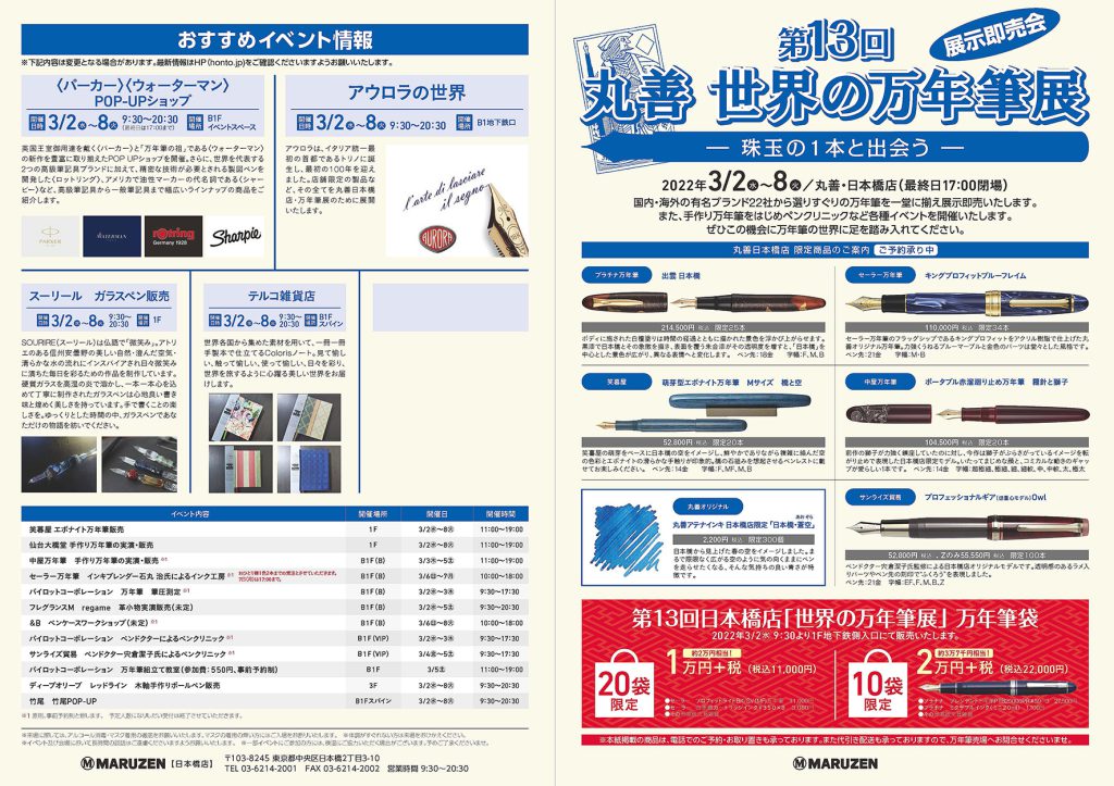 丸善日本橋店(東京都中央区)にて「第13回 丸善世界の万年筆展」に出展致します。