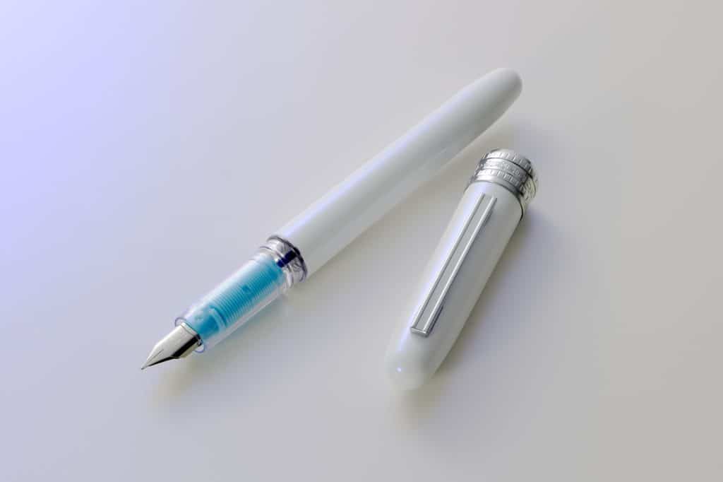 <ボディとの一体感を演出する色付きペン芯> パール塗装とペン芯の色を合わせることでキャップを外しても繋がりのある一体感のある配色になっています。