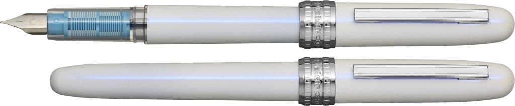 ●素材 胴・キャップ:アルミに偏光パール塗装/グリップ:PMMA樹脂/クリップ:バネ鋼にクロームメッキ/ペン芯:ABS樹脂/中間リング:黄銅にクロームメッキ/ペン先:ステンレスペン(細字・中字)